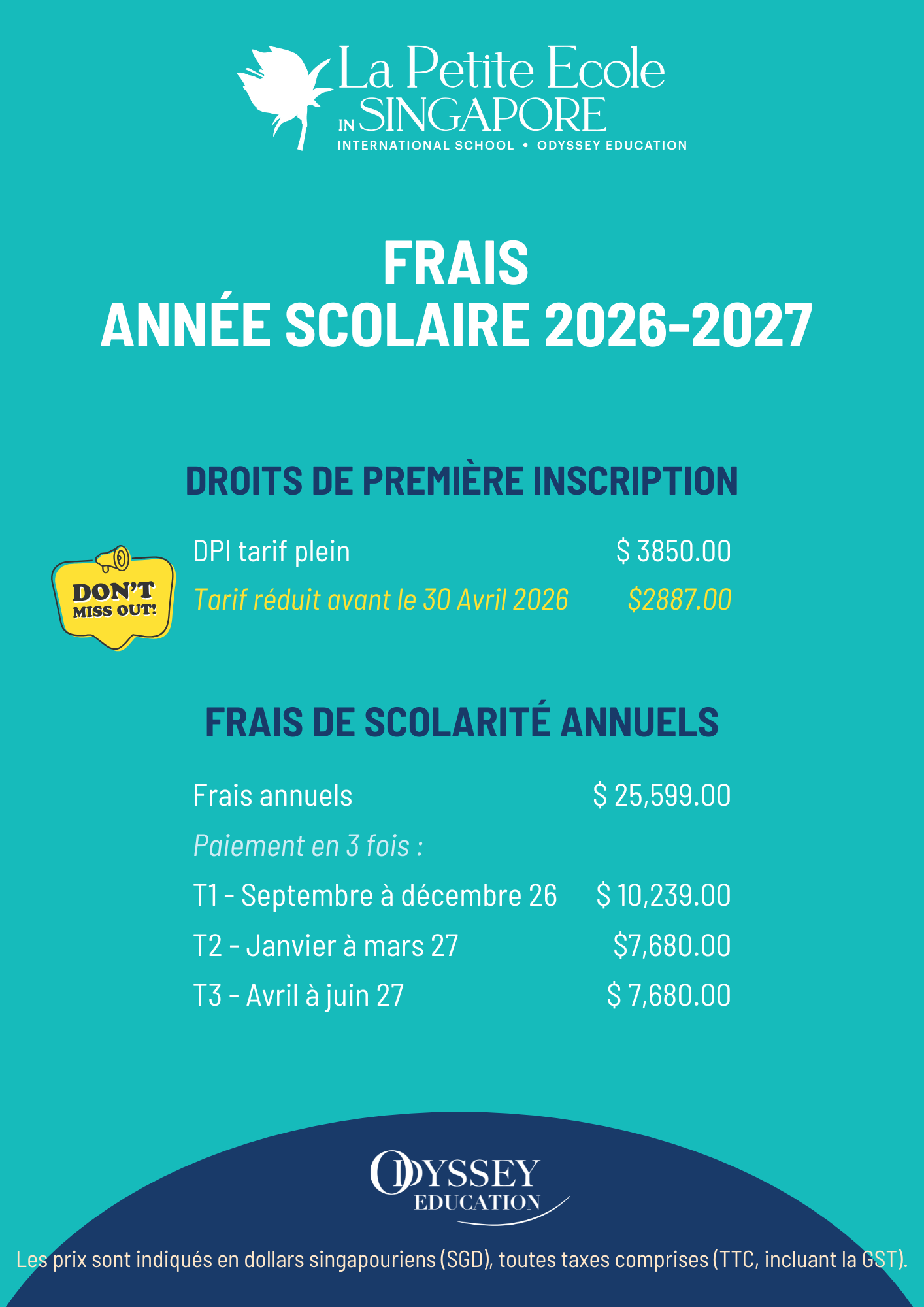 Complétez l’inscription de votre enfant avant le 30 avril 2026 pour bénéficier d’une réduction de 25% sur les Droits de Première Inscription (DPI).